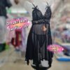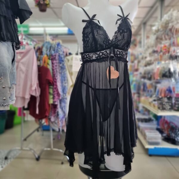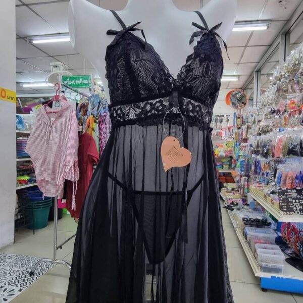 SL57 ชุดนอนซีทรูสวยๆ ชุดนอนไม่ได้นอน ลูกไม้สีดำทรงหางปลา